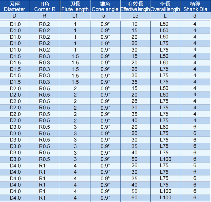 Mainly for the processing of HRC45~70 hardened steel, especially suitable for precision mold parts that need to be processed for a long time.