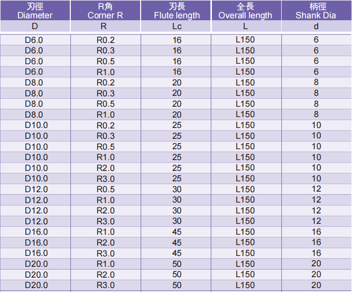 超微粒长柄圆鼻铣刀4FLUTES