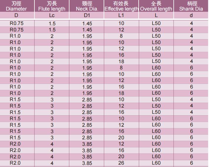 采用高耐磨涂层,圆弧过渡结构确保拥有较高的耐折损性,实现淬硬钢材的长时间切削.