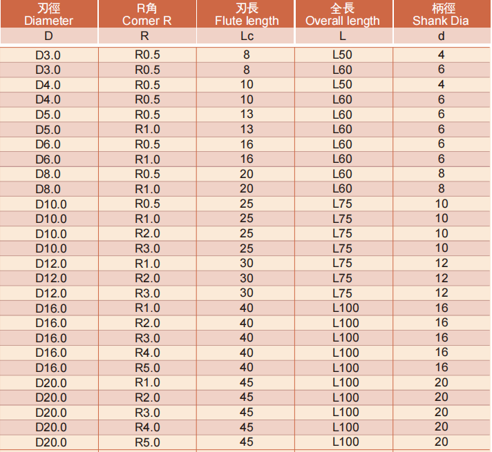 Adopts variable helix angle and unequal cutting edge design to bring perfect anti-vibration performance, mainly for stainless steel processing;